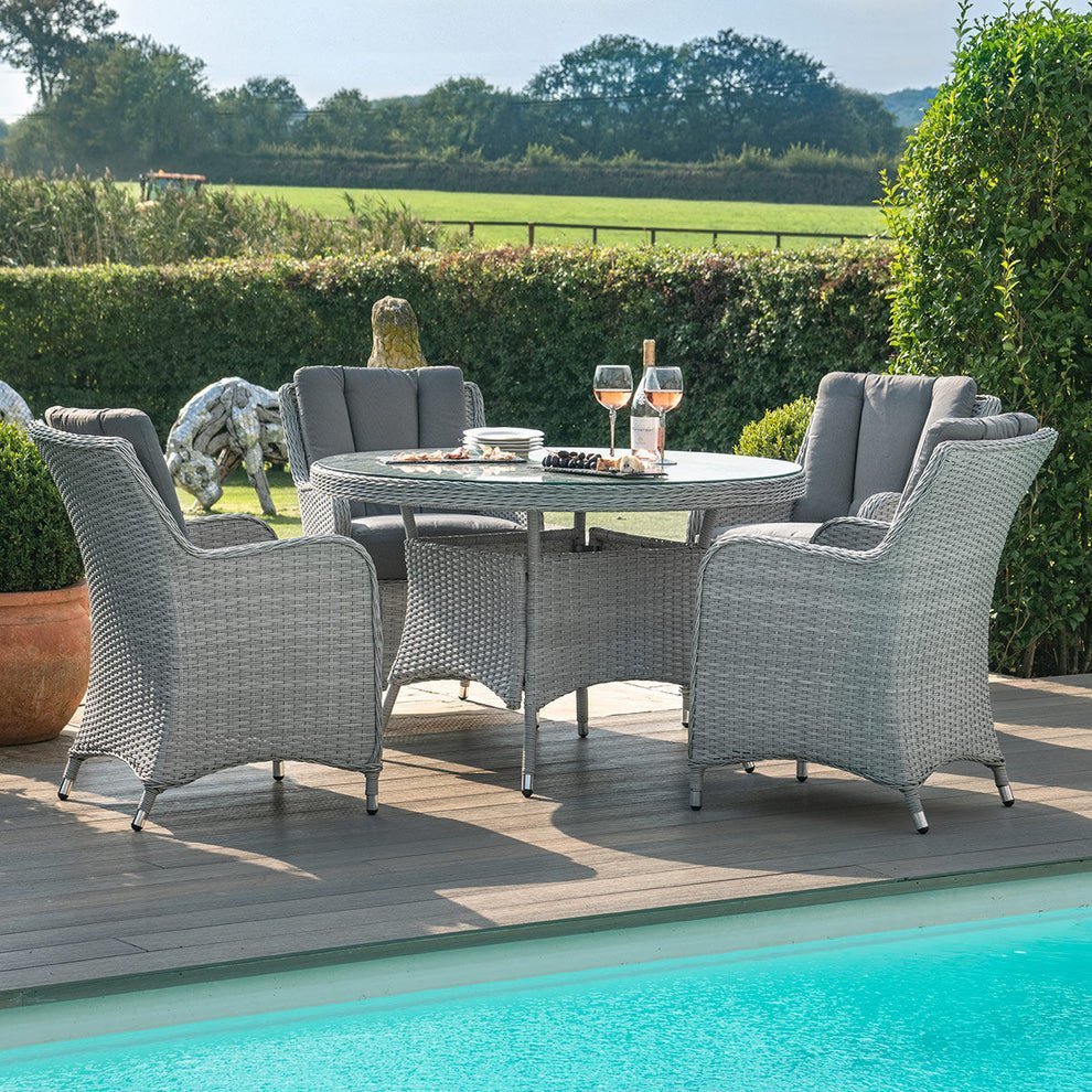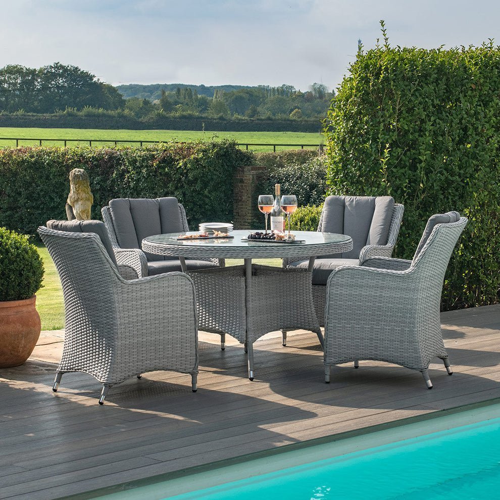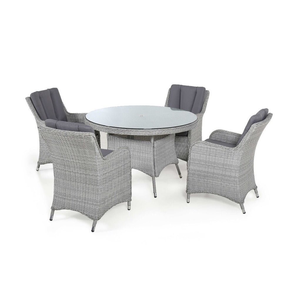 Ascot 4 Seat Round Rattan Dining Set with Weatherproof Cushions