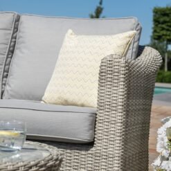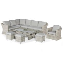 Our new Oxford Deluxe Corner Dining Set with Rising Table and Armchair is a timeless classic which will effortlessly enhance your outdoor living space whilst providing maximum comfort through its thick filled cushions. This set is recognized for its signature curved arms and backs and its beautiful woven edging detail. The ice bucket rising table provides great versatility for your outdoor space. It will allow you to go from dining to lounging as it transforms from a dining table to a coffee table with ease. The Oxford Deluxe Corner Sofa is designed to adapt to your outdoor space thanks to a detachable middle section, meaning you have the freedom to place your sofa on the left or the right.